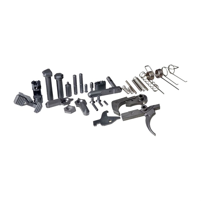708747544954 KIT DE PIEZAS MEJORADAS DEL RECEPTOR INFERIOR DE AR El kit de piezas mejoradas del receptor inferior ofrece un paquete de actualización conveniente para el AR15, ideal para quienes buscan una solución completa de Strike Industries para nuevas construcciones o para actualizar su AR estándar. Este kit incluye todos los elementos básicos que necesitas para armar tu AR (menos la empuñadura), pero con las piezas mejoradas de Strike Industries donde sea aplicable. El kit completo incluye un grupo de control de disparo que ofrece un tirón nítido de 4.5-5.5 lb, con una suavidad inigualable para los gatillos de estilo mil-spec del AR15. Las superficies de contacto del sear, fresadas y pulidas longitudinalmente, junto con un ángulo de sear cortado con precisión, ofrecen una sensación de gatillo enormemente mejorada sin sacrificar la seguridad o la fiabilidad.Pedido pendiente, tiempo de entrega aproximado 4-12 semanas desde el almacén de EE. UU.