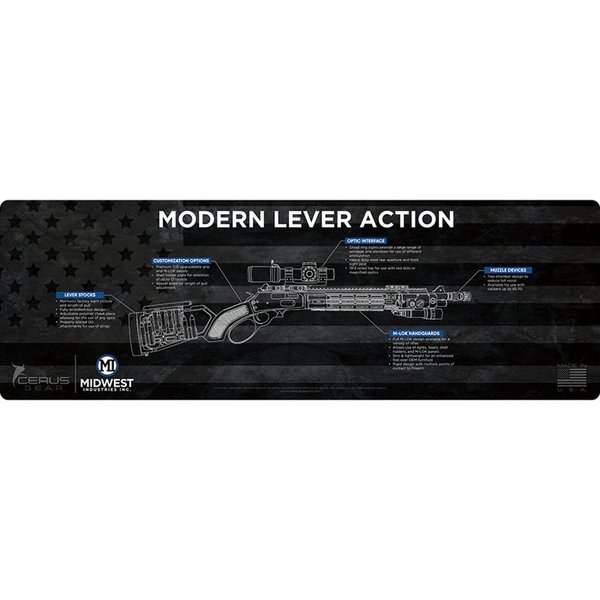 Presentamos la BENCH MATS, GUN MAT LEVER ACTION SERIES 36"X12" BLACK de MIDWEST INDUSTRIES, una alfombrilla de trabajo resistente y ligera ideal para tu banco de armero o taller.