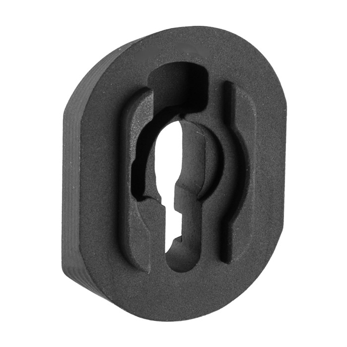 Este diseño de adaptador está mecanizado en aluminio 6061 y cuenta con un acabado anodizado duro que cumple con las especificaciones militares. El adaptador de aluminio se acopla a un sujetador diseñado a medida, mecanizado en acero 4140 duradero, que permite la conexión de la culata SGA.
