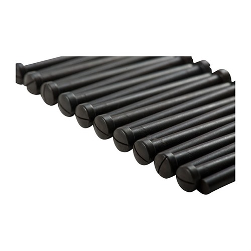 Todo lo que se necesita es un dado con las roscas correctas para fabricar una amplia variedad de tornillos para armas de forma sencilla e inmediata. También necesitarás una lima y, ya sea un taladro de banco o un tornillo de banco. Puedes darles cualquier longitud de rosca, cualquier longitud total y cualquier grosor de cabeza que desees. Los blanks están hechos de acero forjado resistente y fácil de roscar. Si deseas una superficie duradera después de roscar, los tornillos deben ser tratados con el Brownells Surface Hardening Compound (#083-000-033).