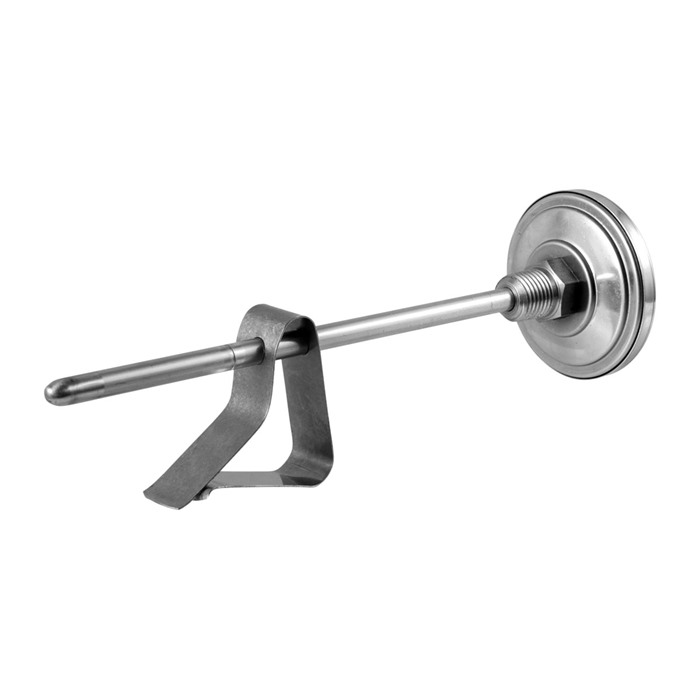 El termómetro de bluing de Brownells tiene un tallo largo de 6". Solo se necesita sumergir 3" del tallo en el baño, dejando un margen de seguridad de 3" para mantener el dial fuera de las sales. Se suministra con un clip para sujetar el termómetro al tanque y mantenerlo a 1" del lado y 1" por encima del fondo de un tanque de 6" de profundidad.