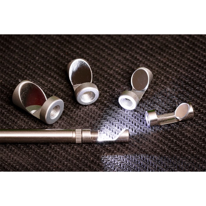 El paquete incluye: varilla con cámara montada, 5 espejos intercambiables de 90° para varios calibres y un cable USB para cargar. NOTA: La unidad es recargable y se carga conectándola a un puerto USB en una PC o cargador de teléfono estándar (no incluido).