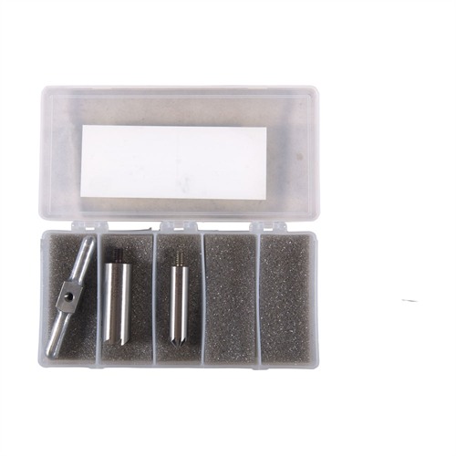 050806022652 El conjunto incluye: un cortador de cara de 90° para cuadrar un cañón después de acortarlo o reparar daños; un cortador de chanfreinado de 45° para romper los bordes de la estría para una salida limpia de la bala o chanfreinar la boca de un cilindro de revólver para recargas rápidas; además de un mango que se adapta a cualquiera de los cortadores y un piloto de latón. El piloto intercambiable mantiene el cortador correctamente alineado. Compra pilotos adicionales para usar un cortador en muchos calibres diferentes. Pilotos para otros calibres disponibles por separado.Pedido pendiente, tiempo de entrega aproximado 4-12 semanas desde el almacén de EE. UU.