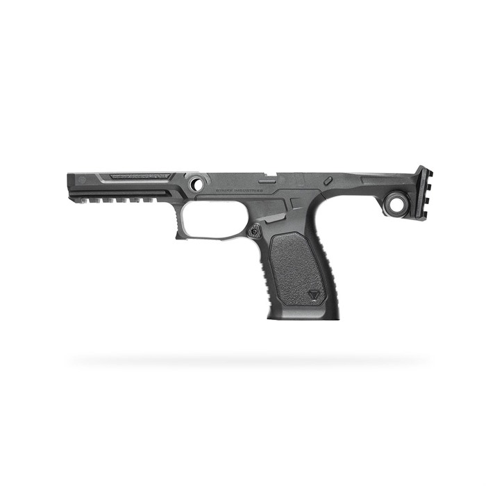 The Strike Modular Chassis (SMC) - BRAVO for SIG Sauer P320 by Strike Industries is a new lite version of the MOST MODULAR P320 (SMC Alpha) Chassis in the WORLD at a fraction of the Alpha's price. Customer feedback was heavily weighed and taken into consideration when Strike Industries developed this chassis so when they say the Bravo was made with the user in mind, they mean it. The new SMC Bravo is made of Polymer Extreme™ which is durable and lightweight — intended to receive P320 FCU's and slides to complete the entire ensemble. This time around users can fully utilize their P320 optics-ready slides to effortlessly install their red dot sights! In terms of upgraded features in the Bravo, the ergonomics have improved with a textured grip which now includes a built-in flared magwell to assist with quick and smooth reloads. Strike Industries optional Ambidextrous Side Charging Handle with a Slide Cover Mount for the P320 is also compatible so each Bravo user can decide which side they want to rack the slide with. This chassis also more universally accepting of many different types of P320 magazines. Users will enjoy the integrated gas pedal above the Picatinny rail to help fight muzzle flip, allowing for faster follow-up shots. Derived from the SMC Alpha, the Bravo remains consistent as it comes with the SMC Rear Module Backstrap molded onto the new chassis as one solid piece. It offers users rear ambidextrous QD sockets and a Picatinny rail mount, perfect for attaching various accessories like their Strike Dual Folding Stock/Brace. The ambi QD sockets in the rear can be used with slings and can even have a lanyard or paracord strung through it (in case you want to hang this up somewhere quickly accessible). Whether you're looking to scratch that sci-fi itch, if you're a Sig fan, or just want a PDW option, the Bravo is a ton of fun and lives up to its hype. Get your SMC BRAVO today before they sell out! FEATURES Ambi QD sockets at the rear w/ loop-thru design so its possible to loop a lanyard or paracord. Built-in magwell for better magazine feeding. Flat magazine hole opening; this make the grip module able to use more different types of P320 magazines. Works with Ambidextrous Side Charging Handle with Slide Cover Mount. Extended picatinny rail located at front bottom of chassis and on Rear Module Backstrap for accessories. Compatible with optional Spare Magazine Holder for SIG SAUER P320 with SI Modular Magazine Release. SMC Bravo for SIG SAUER P320 uses SIG SAUER P320 OEM fitment takedown lever and P320 magazine release, SI Modular Magazine Release is pre-assembled and included. COMPATIBILITY: Calibers: 9mm/.357SIG/.40S&W FCU: All SIG SAUER P320 FCUs which include XSeries as well as M17/M18 with complete function of the manual safety. For SMC use with M17/M18 manual safeties, the notch on the chassis is visible and outlined as a guide for the modification needed to be performed for the manual safeties to be usable. Triggers: Strike Industries only guarantee proper fit and function with SIG SAUER OEM triggers. Strike Industries cannot guarantee safety and function on aftermarket triggers and components. The SMC is made to fit the OEM standards of the SIG SAUER FCU. Slide Lengths: The SMC will work with all P320 slides and barrel lengths but is best matched on the BRAVO for SIG SAUER P320 (Full-Size Length Slides) with 4.7"" barrels or SIG SAUER P320 (Carry Size Length Slides) with 3.9"" threaded barrels combined with a compensator. While the subcompact 3.6"" barrel/slides will also work with the Bravo Strike Industries do not recommend this as the frame would be longer than your slide even if it had a compensator. If you decide to use a slide shorter than the Full-Size length they highly recommend purchasing the Strike SMC Blast Shield to protect your support hand's thumb. Magazine Compatibility: P320 17-round, 18-round, 21-round and Full Size 10/17-round magazines Holsters: The SMC Bravo's general silhouette can fit in a variety of holsters, however, it depends on what accessories are installed (i.e. magholder, optic, light, charging handle) as kydex molds also vary between brands. NOT COMPATIBLE: 45ACP FCU/Calibers 10mm FCU/Calibers Compact 15 and 10-round magazines SMC Alpha frame mounted muzzle devices SMC Alpha Magwell WARNING: Be careful of thumb/hand placement near any moving parts on the Strike Module Chassis/grip module. Misuse or improper placement can cause disfigurement or death. Before every use, always check proper function and that all screws/hardware is secure. Maintain and check all screws/hardware and components regularly as preventative maintenance. Always have your weapon SAFE when not being fired. Always follow all firearms safety rules and never point your weapon at anything you are not willing to destroy. The user is responsible for the modification required to use the M17/M18 manual safeties. The Strike Modular Chassis (SMC) has a visible outline for the shape to fit the M17/M18 manual safeties. Strike Industries only recommends all work be done by a certified gunsmith. Be aware that once you remove material in the SMC chassis for the M17/M18 notch, you cannot go back and there will always be a notch for the manual safeties once the modification is done to the SMC chassis. DISCLAIMERS: Strike Industries are not lawyers and do not give any legal advice. Always be aware of federal, your state, and local laws. The Strike Modular Chassis (SMC) BRAVO for SIG SAUER P320 by Strike Industries is NOT A FIREARM. This is a grip module/chassis system made to work with SIG SAUER P320 FCU's and slides. Users will have to supply your own complete P320 slide w/ barrel, FCU, and magazine. The SMC BRAVO is not a serialized product. The Strike Mag Holder and Dual Folding Adapter are optional Strike Accessories that are compatible with the SMC BRAVO. “SIG SAUER” and ""P320"" are federally registered trademarks of SIG SAUER, Inc. and is one of many trademarks owned by SIG S