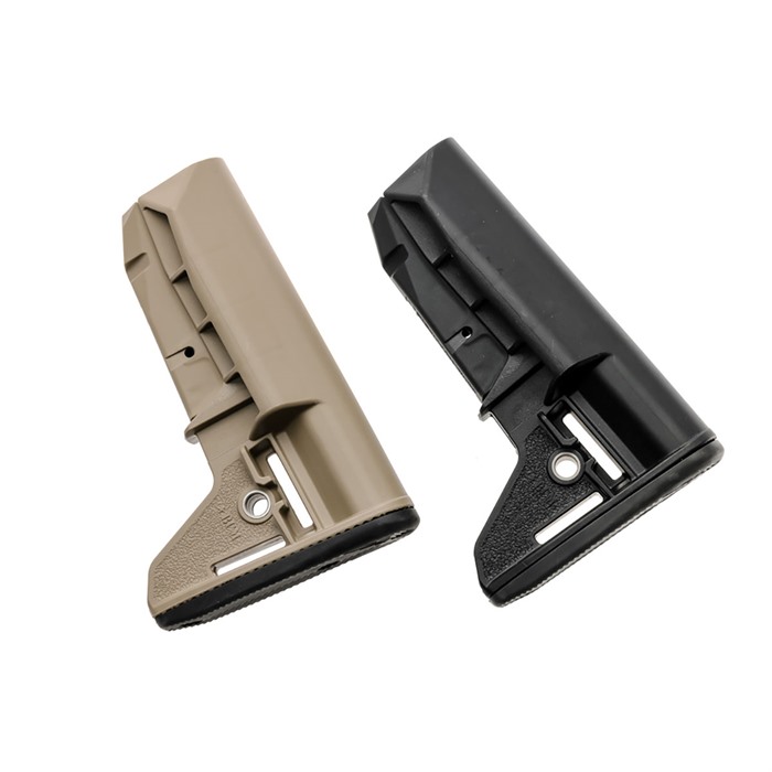 BCM Stock Kit w/ Mod 2 stock and MK2 RMS INCLUDES: BCM Stock Mod 2 - Black BCM MK2 Receiver Extension (approximately 3/4” longer than carbine), 7076T6, 8 position, Mil-Spec diameter Mil-Spec M16A4 Rifle Action Spring BCM MK2 Mod 1 - T0 Buffer (weight = approximately 3.8oz) BCM EPM4 End Plate (include mount for QD swivel) Locking Nut (Castle Nut) M4 FIT LIKE A GLOVE, BUILT LIKE A TANK Made by Americans in Hartland, WI – the BCM® Mod 2 stock is an improvement over the baseline M4 accessory with enhanced ergonomics, and next-level durability. Recontoured into a patented (United States Patent Number: D901616) semi-clubfoot design, the Mod 2 is fits on Mil-Spec carbine receiver extensions, and optimized for intermediate length receiver extensions (MK2, AR10, A5). These improved lines also enhance shooting in the prone position while remaining snag free, with no edges to catch or tangle in slings, antenna, or other PPE. A SCION OF CONFLICT DELIVERING UNSURPASSED PERFORMANCE Retaining the patented* internal latch system and the ambidextrous rotation limited QD interface, the BCM Mod 2 Stock features an end user removable buttpad, an improved VBOST (Vehicle Borne Operations Sling Tab) sling retention point, “plus two additional web sling attachments slots. United States Patent Number: 9,109,855 ADAPT TO YOUR MISSION MODULAR BUTTPAD Selecting between a rubberized pad, traditional in light infantry operations; or solid diamond textured non-slip surface, optimized for high-ready weapons manipulation, the removable Modular Buttpad is capable of enabling both techniques. VBOST The VBOST is an interface that provides multiple positions for retention bands when the weapon system is run with the sling “S-folded” against the stock. Typically configured in this manner for vehicle operations or concealed “low vis” movement, the VBOST creates options for the end user that can be vital in critical life saving situations. MADE IN AMERICA All BCM components and accessories unite state of the art manufacturing with lightweight and durable materials to ensure components that last a lifetime, performing far beyond standards established nearly six decades ago. Like all BCM rifles and accessories, the BCM Mod 2 Stock is designed and made in the USA. Offered in two configurations: Stock only or stock kit with Mk2 RMS hardware.