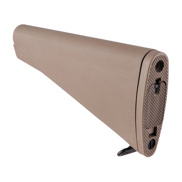 Brownells expands our lineup of quality AR parts with the classic A2 rifle stock. The A2 buttstock is foam filled, and has the door assembly, buttplate assembly, and swivel assembly. It does not include a buffer tube,buttcap spacer or attachment screw.