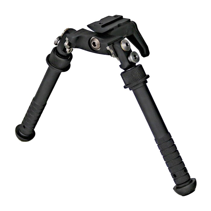 ATLAS BIPOD GEN 2 CANT AND LOC (CAL) BIPODS The CAL (Cant And Loc) Atlas Bipods were developed for shooters that do not desire the Panning feature. It is comprised of 6061-T6 aluminum that is Mil-Spec Type III hard coat anodized and have heat treated stainless steel components. B&T chose to support a legend in the shooting sports by using the original KMW “Pod-Loc™. With the CAL bipod mounted to your rifle, you will be able to lock and un-lock the canting motion by rotating the Pod-Loc™ lever. Turn clockwise to lock and counter clockwise to un-lock. The Pod-Loc™ lever position can be adjusted for positioning by pulling the lever directly away from the body of the CAL and rotating to desired position. This positioning can be repeated until optimal position is achieved. Available in black only. FEATURES Height Range: 4.75 – 9.0" approximately Cant: 15 degrees +/- 5 leg positions: 0, 45, 90, 135 and 180 degrees Non-Rotating Legs: outer leg does not rotate around inner leg Larger, stronger inner legs Weight: 12.87 ounces Footprint: 9.75 – 13"