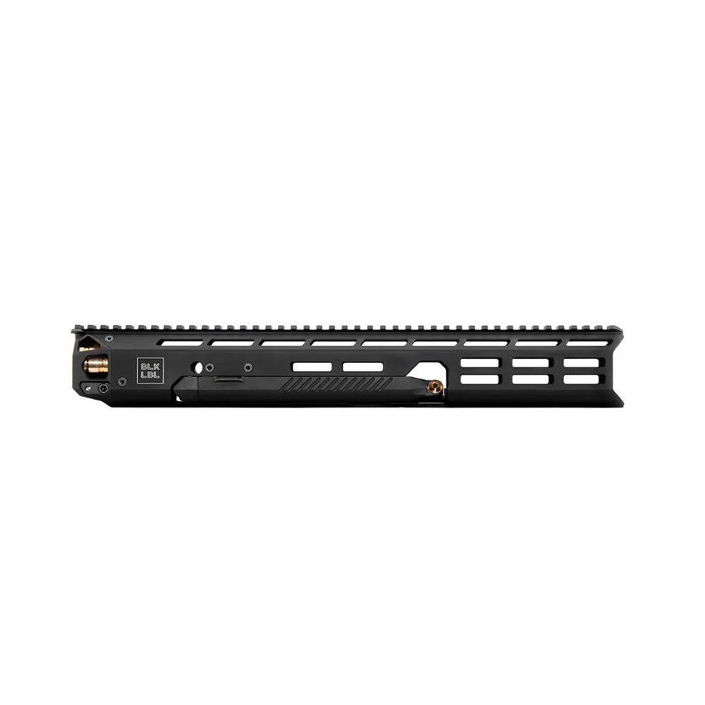 Cuando no está desplegado, las patas del bipode BLK LBL se pliegan fácilmente hacia atrás, quedando al ras con la protección de la mano. Esto significa que no se engancharán en la ropa, el equipo o las ramas mientras te mueves, y no interferirán cuando dispares a mano, desde una barricada o incluso al almacenar tu rifle.