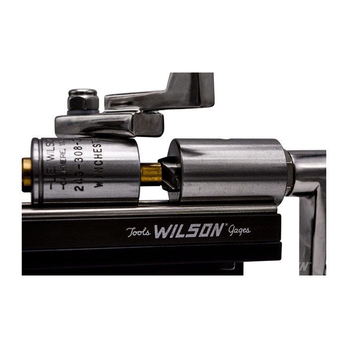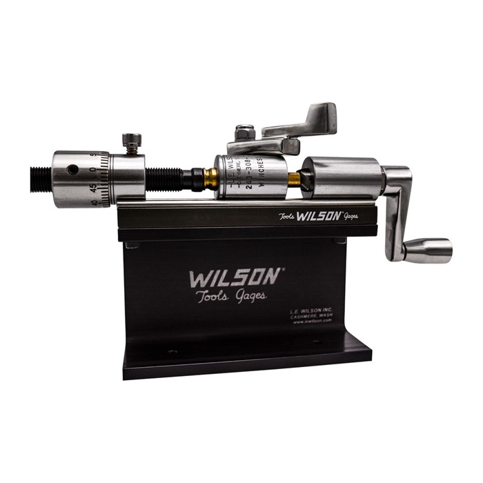 L.E. WILSON INC. CASE TRIMMER KIT W/ MICRO ADJUST KIT Wilson Case Length Micro Trimmer Kit - Includes Stand, Clamp, and the Famous Wilson Case Trimmer In production since 1936. Case Holders sold separately. FEATURES Micrometer Adjustment – Provides precise, .001" increments for fine-tuned case trimming. Durable Stainless Finish – Coated with black nitride, anodized, or hard anodized for long-lasting wear resistance. Wide Caliber Range – Trims cases from .17 to .45 caliber, making it highly versatile, just add the correct case holder. Revolving Crank Handle – The new black anodized handle replaces the stainless crank and jam nut for a smoother trimming experience. Multi-Function Capability – Works with additional cutters for inside neck reaming, military crimp removal, and case mouth deburring. Stable and Consistent Alignment – The case holders simulate a rifle chamber, ensuring square, repeatable cuts every time.