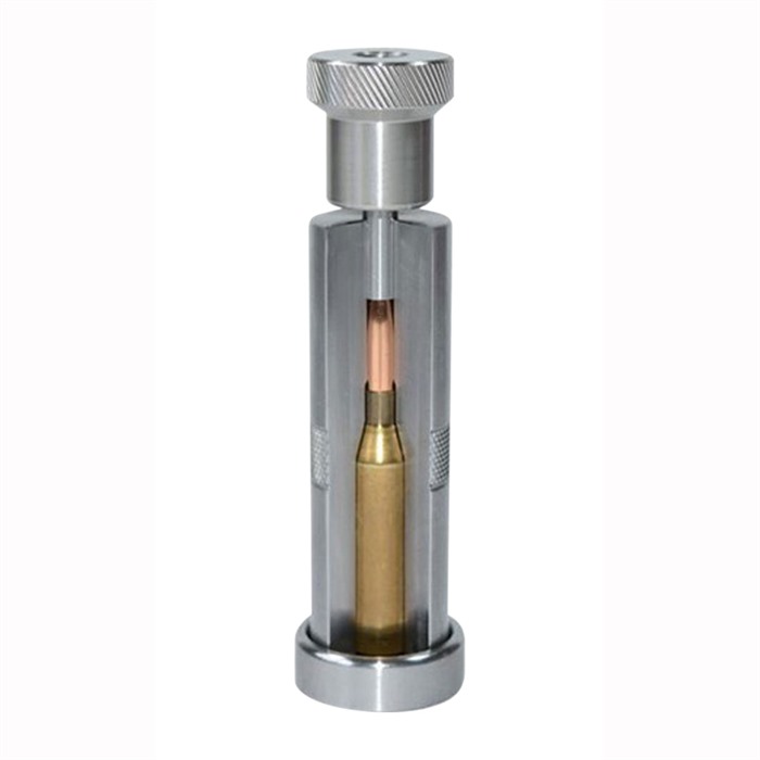 La funda y la bala quedan completamente capturadas por el die antes de que la bala sea empujada directamente hacia el cartucho por un vástago de asiento de ajuste preciso.