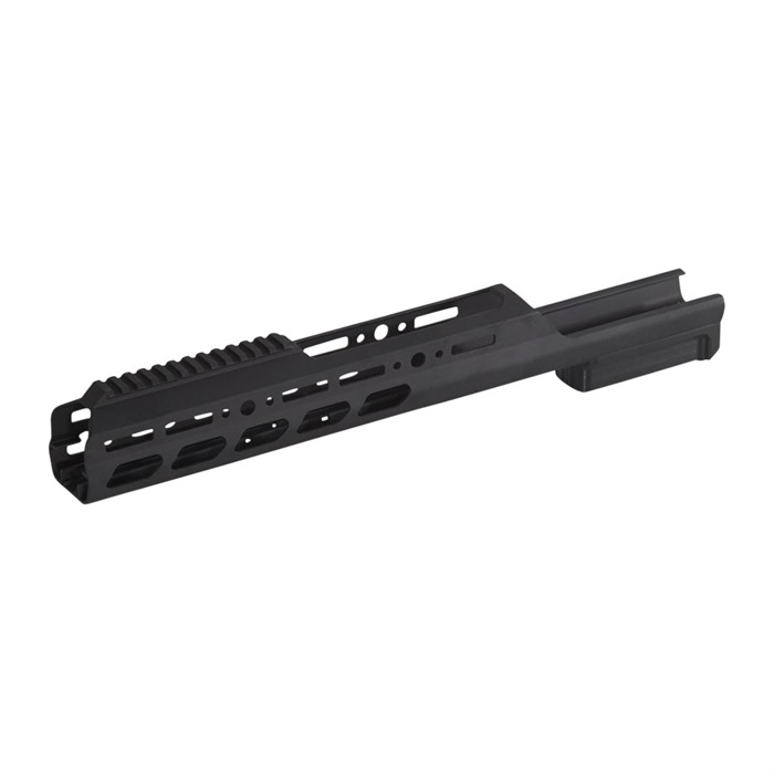 Disfrutarás de múltiples puntos de sujeción, incluyendo el patrón de agujeros estándar de KRG y MLok. Dado que es mejor mantener tu mira lo más cerca posible de la línea de tiro, el forend cerrado tiene un área recortada sobre el cañón donde no podrías utilizar rieles, lo que permite que el objetivo de la mira se sitúe en una posición natural.
