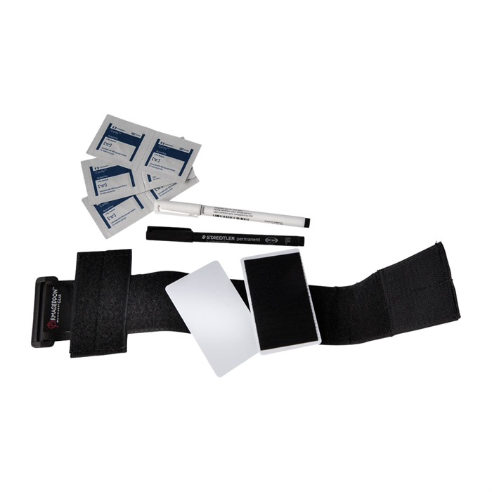 El Competition Data Armband Kit de Armageddon Gear es un soporte de notas resistente y listo para el campo que permite al tirador escribir rápidamente notas sobre arreglos de objetivos, distancias, datos de disparo o puntuaciones de etapas.