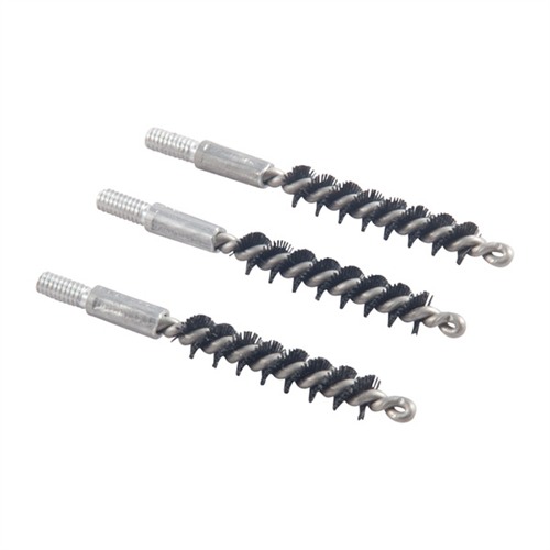 Los cepillos de limpieza están diseñados para no rayar el cañón ni dañar la boca del arma, y son lo suficientemente resistentes para un uso intensivo. Las cerdas de nylon, enrolladas alrededor de un núcleo de aluminio y un acoplamiento de aluminio con rosca macho, son completamente libres de latón, eliminando las indicaciones falsas de fouling de cobre que pueden ocurrir al usar cepillos con núcleo de latón.