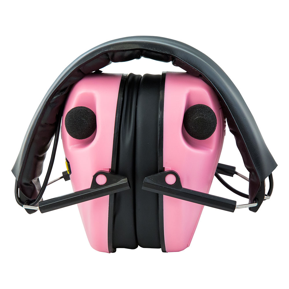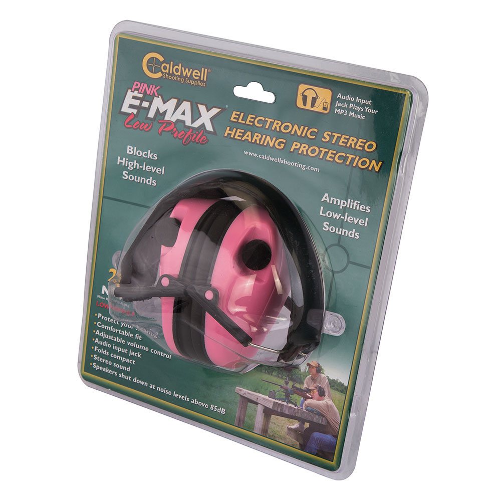 La protección auditiva electrónica E-Max® de perfil bajo en color rosa combina una excelente circuitería con un diseño de copas de oído de bajo perfil, ideal para tiradores de escopeta y de acción.