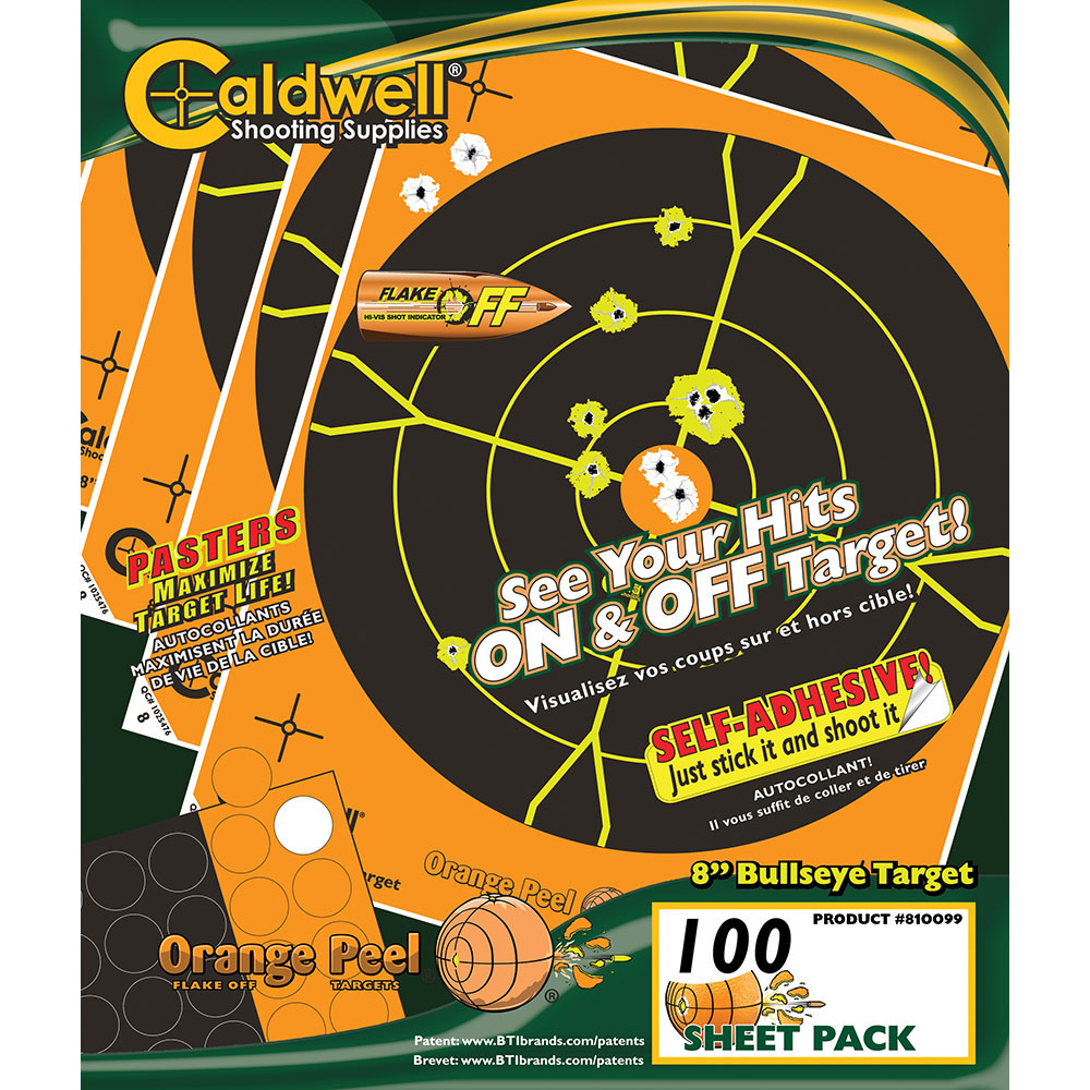 El fondo naranja y el objetivo negro facilitan la adquisición del objetivo a través de la mira, incluso a largas distancias. Caldwell® fabrica estos excelentes objetivos en casi todos los tamaños y formas imaginables a un precio que cualquiera puede permitirse. Los Orange Peels son claramente la mejor manera de acertar en el blanco.