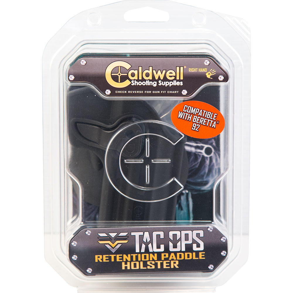 La línea de fundas Caldwell Tac Ops, portacartuchos y cinturones de servicio ofrece todo lo que un propietario de pistola necesita. Las fundas de retención Tac Ops están hechas de polímero reforzado y están diseñadas para adaptarse a numerosos modelos de pistolas, además de contar con un bloqueo de retención del guardamonte.