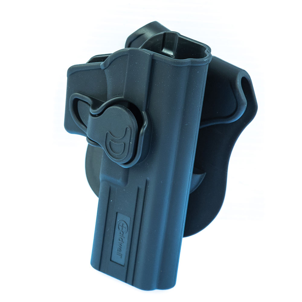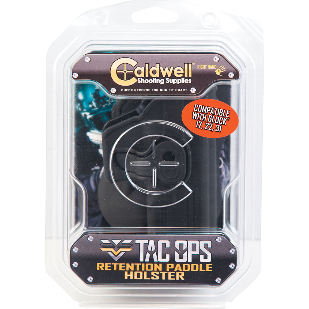 Esta línea de fundas Tac Ops de Caldwell, fundas para cargadores y cinturones de servicio ofrece todo lo que un propietario de pistola necesita. Las fundas de retención Tac Ops están hechas de polímero reforzado y están diseñadas para ajustarse a numerosos modelos de pistolas, además de contar con un bloqueo de retención en la guarda del gatillo.