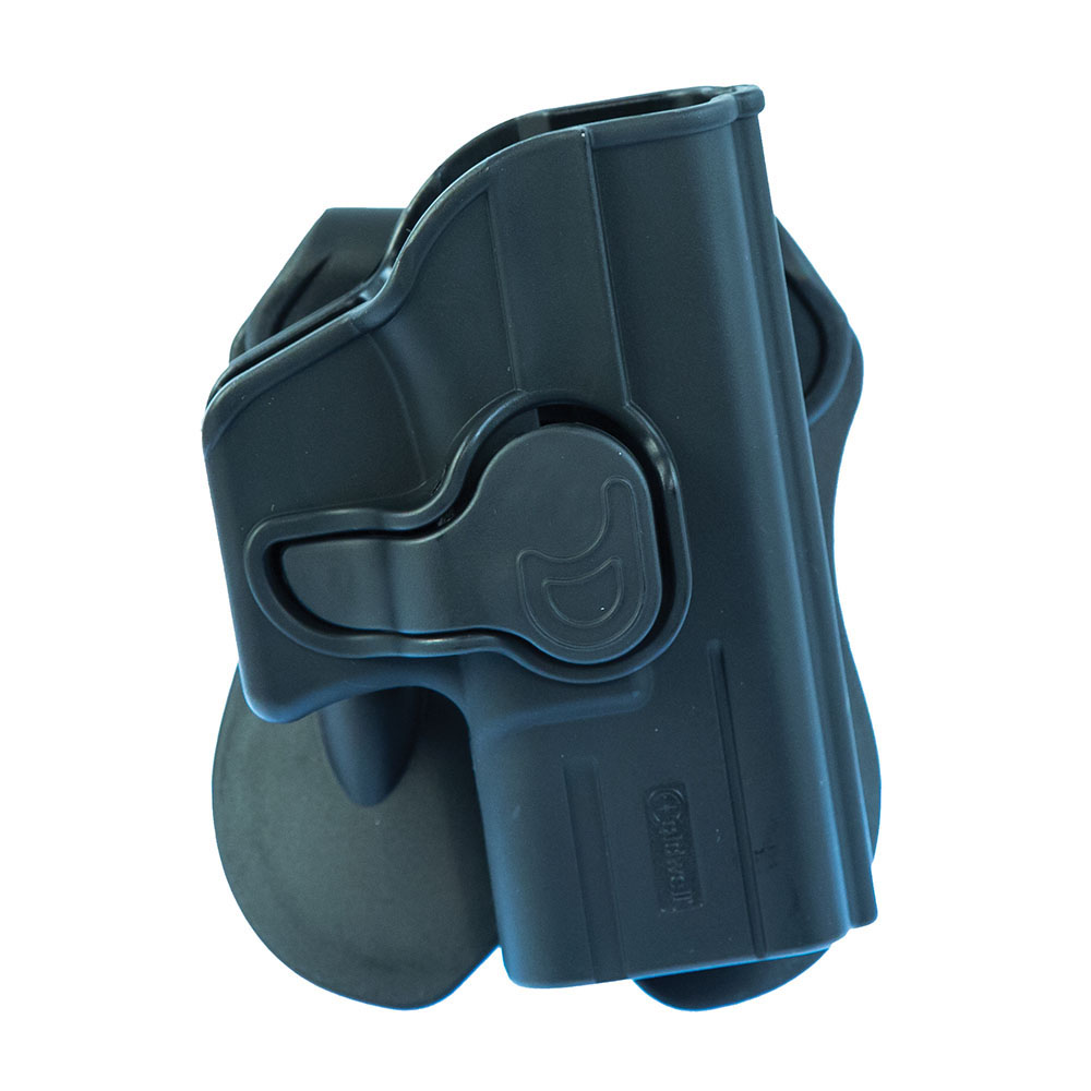 Esta línea de holsters Tac Ops de Caldwell, fundas para cargadores y cinturones de servicio ofrece todo lo que un propietario de pistola necesita. Los holsters de retención Tac Ops están fabricados con polímero reforzado y están diseñados para adaptarse a numerosos modelos de pistolas, además de contar con un bloqueo de retención del guardamonte.
