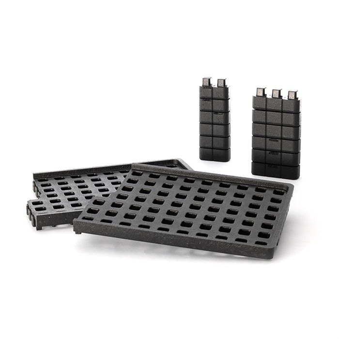 - Paneles y Bloques de EPP: Los paneles individuales de Polipropileno Expandido (EPP) se ensamblan de manera segura para maximizar la protección, versatilidad y facilidad de uso.