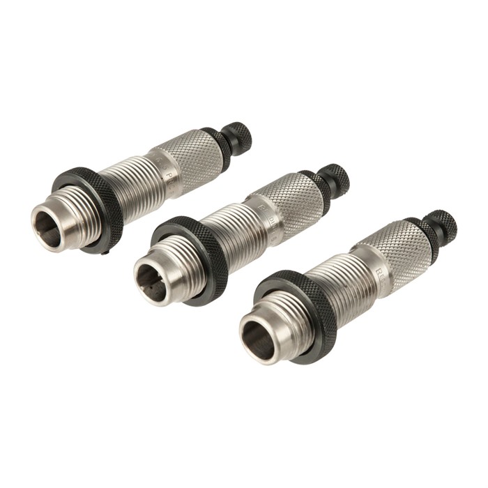 El set de dies Deluxe de Redding incluye el die de dimensionamiento de longitud completa, el die de asiento estándar y el die de dimensionamiento de cuello. Todos los dies están fabricados con los mejores aceros aleados disponibles y mecanizados en tornos Hardinge Super-Precision, capaces de mantener las tolerancias más estrictas de la industria.