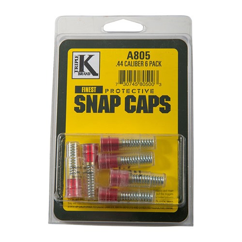 Los "primers" con resorte en estos snap caps actúan de manera similar a un primer real, amortiguando el impacto para que no haya daño en el percutor. Con su color brillante y una sensación "diferente", evitan confusiones con cartuchos reales o dummies de prueba funcional.