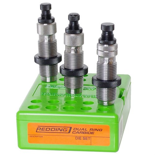 611760011917 Los dies de sizing de carburo de doble anillo son la respuesta correcta al compromiso que ha afectado a los dies de carburo tradicionales de todos los fabricantes desde su creación. El anillo de sizing tradicional debe cumplir con una doble función que no puede realizar. Se requiere que dimensione el casquillo lo suficiente para asegurar la bala (incluso con el latón más delgado), lo cual todos logran con cierto éxito. Sin embargo, a partir de ese punto, todos los dies de carburo tradicionales redimensionan el resto de tus casquillos en exceso. El precio de este compromiso es la vida útil acortada de tu latón sobrecargado, una apariencia poco atractiva y un ajuste en la recámara menos que ideal, lo que puede tener un efecto adverso en la precisión. La solución de Redding es única, incorporando dos anillos de carburo dentro de un solo die de sizing. El anillo superior está posicionado para dimensionar solo la parte de retención de la bala del casquillo, mientras que el otro está configurado para dimensionar adecuadamente el cuerpo del casquillo sin sobrecargar el latón. Tus casquillos dimensionados no solo se verán bien y funcionarán mejor, sino que la vida útil del latón aumentará. El conjunto de dies de sizing incluye el die de sizing de doble anillo de carburo, el die de asiento y el die expansor.Eliminado del programa por el fabricante