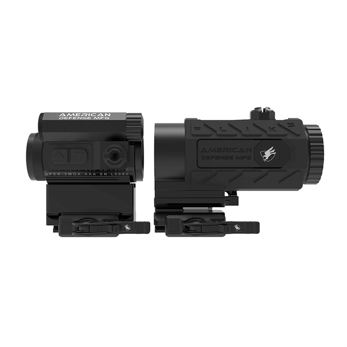 Without the use of an effective magnifier, owners of rifles equipped with a red-dot sight are only limiting their platform's effective range, since the 1X power of an RDS tube can't provide effective aiming at distance. The solution is to mount a total sighting system like the American Defense DUO 5 optics package on their carbine. The American Defense Spek Red Dot is powered by a single AAA battery, not those unique, hard-to-find batteries that power other red-dot optics. You can find AAAs at any hardware store, and the sight runs for up to five years on a single battery! Other features found in the American Defense Spek Red Dot include a 2 MOA dot complete with 12 different brightness settings, 10 designed for daytime use and one designed for nighttime operations when paired with night-vision equipment. Each American Defense Flik5 5X Magnifier is a fixed-power option designed to increase the effective sighting range of any red-dot or holographic sight. The magnifier includes an ambidextrous mount that allows users to quickly flip from 1X to 5X magnification. The mount is made from strong, lightweight titanium and can be had with a titanium quick-detach lever.