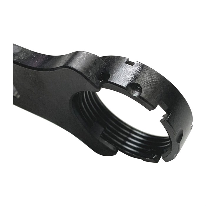 Como muchos usuarios de AR, FDC utilizaba una llave de armero pesada y poco manejable, o una llave de tuerca de castillo de metal estampado que no se podía usar con un torquímetro. Ambas funcionan, pero ninguna es ideal. Una es excesiva, la otra es apenas suficiente.