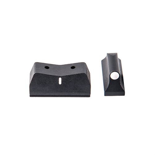 Suppressor height white line, V-notch rear sight and a white dot front post pull your eye to the front sight in high stress or low light conditions. Presents a very fast, highly visible sight picture to get you on target quickly. Low profile, no-snag design (even the top of the front sight body is rounded) is great for carry and combat competition guns. Matched front and rear sets offer direct replacement of factory sights. Standard Dot gives better long range accuracy.