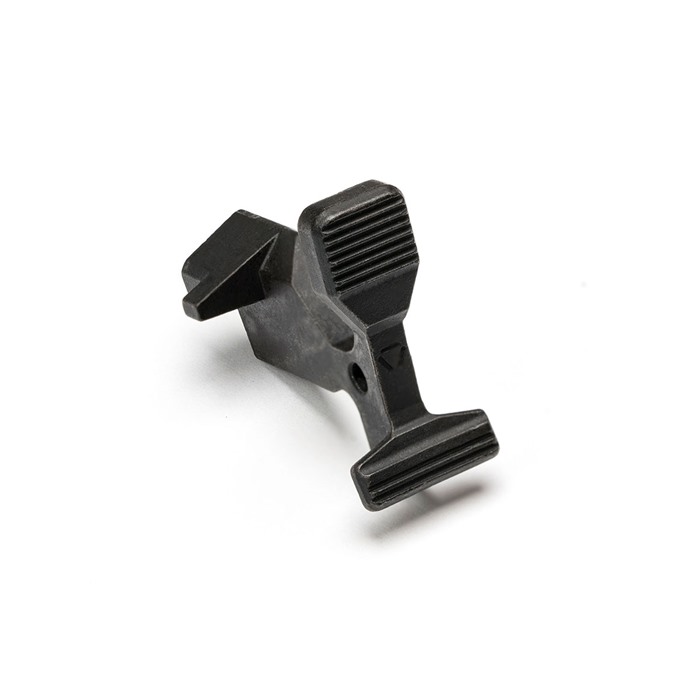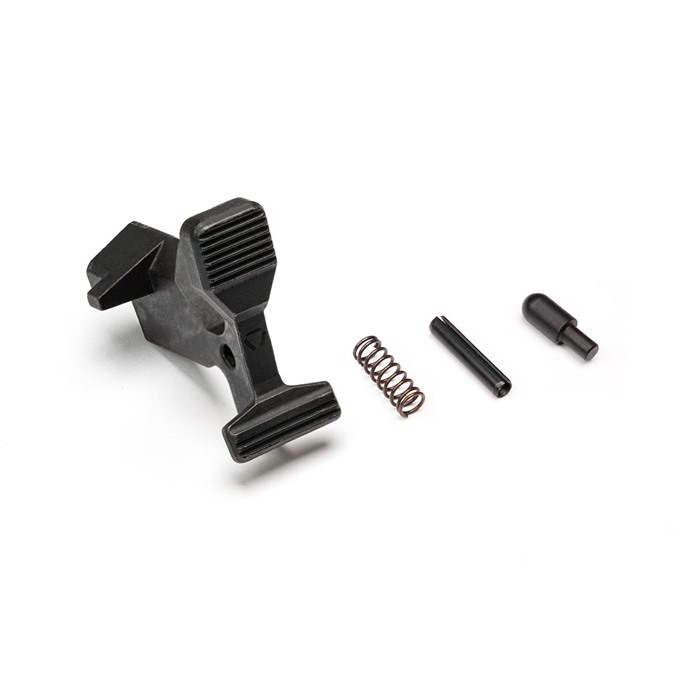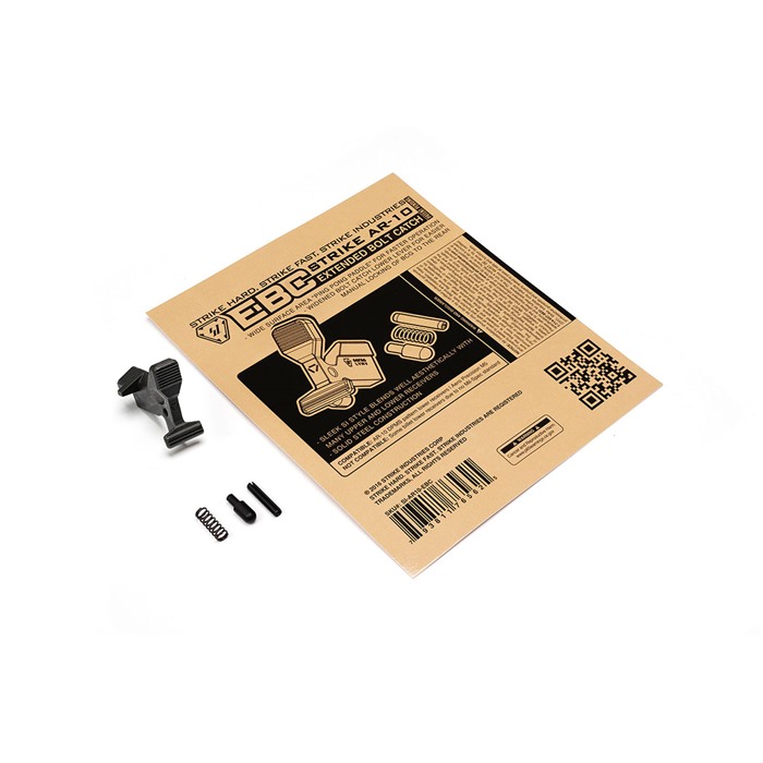 The Strike AR-10 Enhanced Bolt Catch is another piece in the SI line of high quality parts for the AR-10 market. This SI Enhanced Bolt Catch (EBC) features an extra wide bolt catch lower lever surface and grooves for added grip which helps make its operation effortless. The widened bolt catch lower lever assists in the manual locking of the bolt carrier group (BCG) to the rear. The solid construction and clean matte black finish make it a great looking replacement or an essential pick for a new build project. Looking for a great value with better functionality, add some SI style and look no further than the Strike AR-10 Enhanced Bolt Catch. Package Contents: x1 Strike AR-10 Enhanced Bolt Catch x1 Bolt catch plunger x1 Bolt catch spring x1 Roll pin Product Features: Wide surface area "ping pong paddle" for faster operation Widened bolt catch lower lever for easier manual locking of BCG to the rear Grooves for added grip Sleek SI style blends well aesthetically with many upper and lower receivers Solid AISI 8620 steel construction COMPATIBILITY: AR-10 DPMS/LR-308 & SR-25 pattern lower receivers Aero Precision M5 MEGA Maten Billet Ambi Receiver NOT COMPATIBLE: Some billet lower receivers due to no Mil-Spec standard SLR Rifleworks SLR-B30 Ambi Billet Lower Receiver NOTE: Due to no Mil-Spec standards for the AR-10 platform, some parts will still function as intended but may have slight movement -CALIFORNIA PROPOSITION 65 WARNING:- WARNING: This product contains chemicals known to the State of California to cause cancer and birth defects or other reproductive harm. For more information: www.P65Warnings.ca.gov