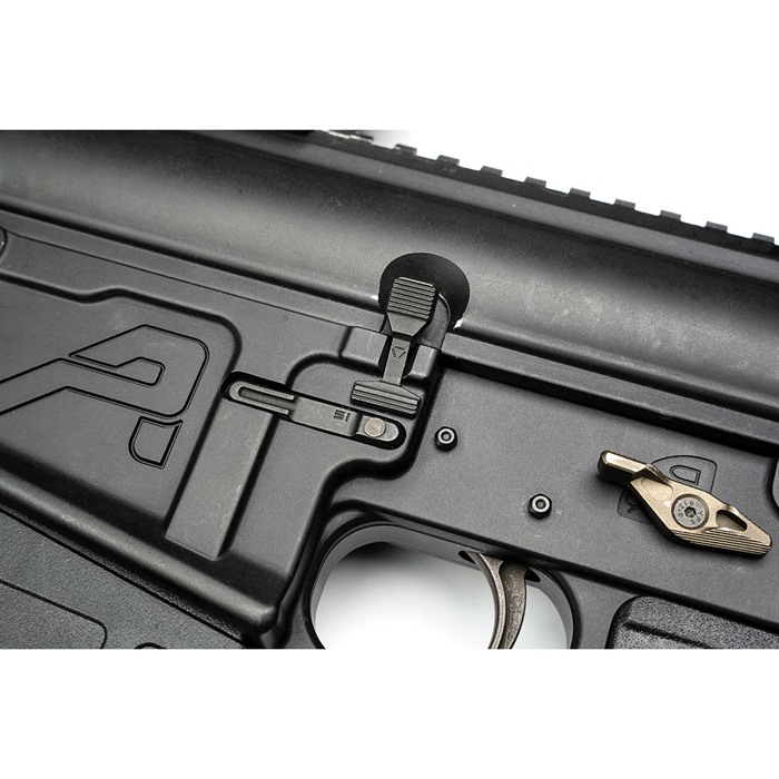 - Lever inferior del bolt catch ensanchado para un bloqueo manual más fácil del BCG hacia atrás.