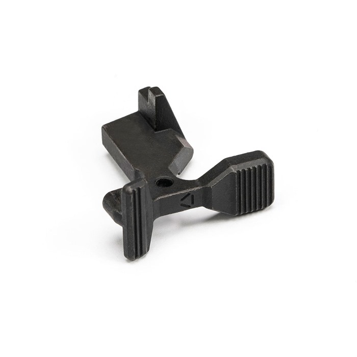 El Strike AR-10 Enhanced Bolt Catch es otra pieza de la línea de partes de alta calidad de SI para el mercado del AR-10. Este Bolt Catch Mejorado (EBC) cuenta con una superficie del lever inferior más ancha y ranuras para un mejor agarre, lo que facilita su operación.