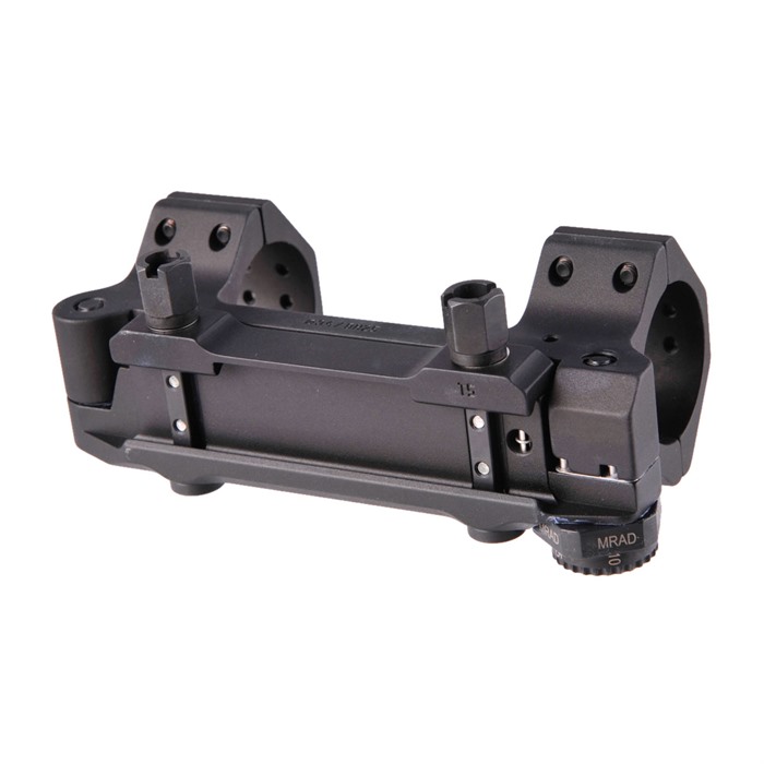 A menudo, el rango de ajuste de elevación del visor no es suficiente para compensar la caída de la bala en distancias largas. Esta montura fue desarrollada para compensar el rango de ajuste que falta en el visor. La inclinación de la montura se puede ajustar individualmente en pasos de 10 desde 0 hasta 70 MOA.
