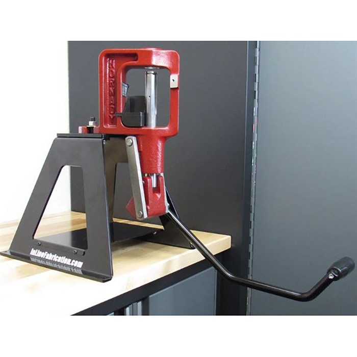 Inline Fabrication manufacturers several accessories to enhance your reloading experience. Each Ergo Roller lever is made specifically for a specific model of press to position you in the most ergonomic reloading position. The forward offset design of the ergonomic levers snug you into your press, positions you perfectly to see your powder charge before placing a bullet, keeps you from bending/leaning over time after time and keeps your comfortable through-out your reloading session. The roller handle is super smooth and a dream to use. The levers are lathe cut & threaded; then black powder coated. The roller bearing handle is very comfortable diameter to grip and a dream to use.