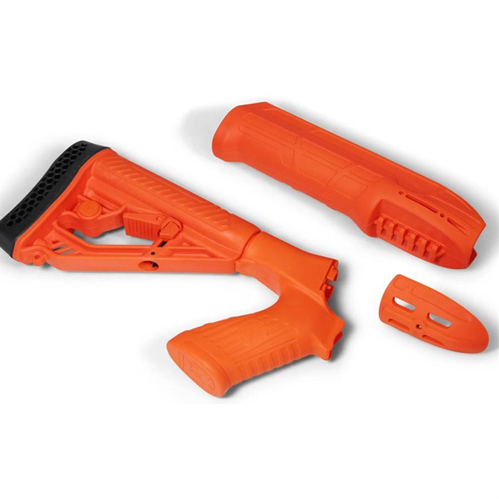ADAPTIVE TACTICAL, LLC EX PERFORMANCE ADJUSTABLE STOCK & FOREND FOR MOSSBERG 500/590/88 Optimized for pump shotguns, the advanced design features and high-impact, polymer construction of the EX Performance Adjustable Stock and Forend make it an ideal choice when upgrading your Mossberg 500 & 88*, 590 series 12g pump shotgun. The EX Performance Adjustable Stock features an easy-to-reach rapid adjust lever for custom length-of-pull, and includes an integrated QD swivel attachment and molded in non-rust standard sling swivel attachment. Durable polymer construction with a comfortable non-slip vented rubber recoil pad, oversized extra strength adjustment pin, and sleek industrial design. The EX Performance Forend features a 2 inch picatinny rail concealed under the nose cap. Uncovered it’s ideal for attaching tactical accessories like lasers or lights. Constructed of durable of high performance, lightweight polymer. Important! EX Forend installation requires all Mossberg Maverick 88 or Mossberg 500 models made after March 2020 to purchase a 7 3/4"" or 6 3/4"" 12 gauge metal action slide tube assembly and forend retention nut from Mossberg, a local dealer, an online retailer or directly from Adaptive Tactical. Shockwave NOTICE: The EX Forend is compatible with the Mossberg Shockwave platform, however Adaptive Tactical does not recommend use of the EX Forend or EX Tactical Lighted Forend in conjunction with the Shockwave firearm. The dimensions of the EX Forend combined with extreme use conditions can potentially position the shooter’s hand in close proximity to the muzzle end of the firearm. This scenario could result in serious to life threatening injuries. To minimize the potential for accidental discharges and/or serious injury, Adaptive only recommends the use of the factory forend with the safety strap. SPECS Designed for owner installation Accessory rail concealed under forend nose cap Adjustable Stock Maximum Length: 15” with recoil pad 14” without recoil pad Minimum Length: 11.5” with recoil pad 10.5” without recoil pad Integrated sling attachment points Available Colors: Black Orange - Optimized and readily identifiable for ‘Less Lethal’ Law Enforcement applications Compatible with Mossberg 500 & 88*, 590 series 12g pump shotguns Made in the U.S.A. NTOA Member Tested and Recommended