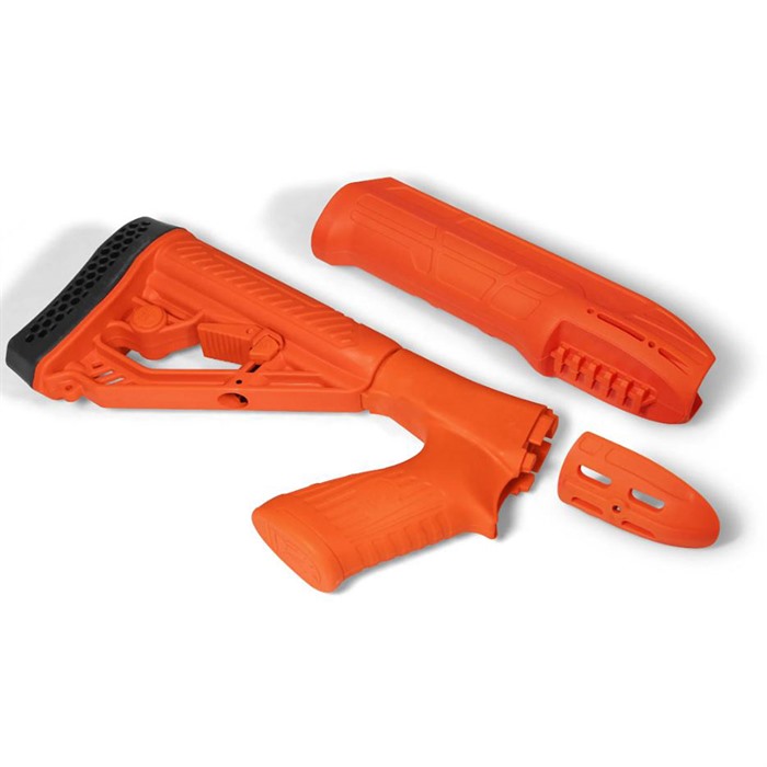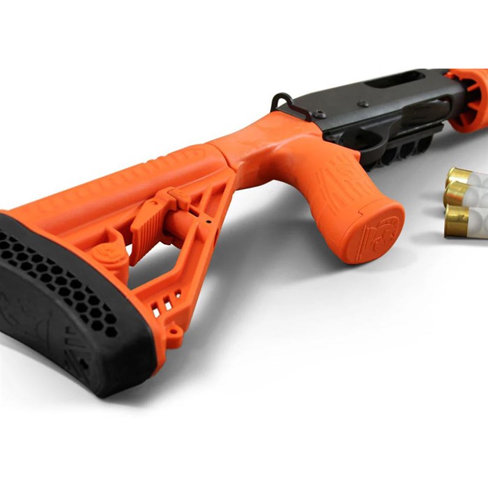 ADAPTIVE TACTICAL, LLC EX PERFORMANCE ADJUSTABLE STOCK & FOREND FOR 12G REMINGTON 870 Optimized for pump shotguns, the advanced design features and high-impact, polymer construction of the EX Performance Adjustable Stock and Forend make it an ideal choice when upgrading your Remington 870 12g pump shotgun. The EX Performance Adjustable Stock with pistol grip features an easy-to-reach rapid adjust lever for custom length-of-pull, and includes an integrated QD swivel attachment and molded in non-rust standard sling swivel attachment. Durable polymer construction with a comfortable non-slip vented rubber recoil pad, oversized extra strength adjustment pin, and sleek industrial design. The EX Performance Forend features a 2 inch picatinny rail concealed under the nose cap. Uncovered it’s ideal for attaching tactical accessories like lasers or lights. Constructed of durable of high performance, lightweight polymer. NOTICE: Not recommended for use with TAC-14. Creates a short-barreled configuration. Forend not compatible with the Remington 870 Super Magnum SPECS Designed for owner installation Accessory rail concealed under forend nose cap Adjustable Stock Maximum Length: 15” with recoil pad 14” without recoil pad Minimum Length: 11.5” with recoil pad 10.5” without recoil pad Integrated sling attachment points Available Colors: Black Orange - Optimized and readily identifiable for ‘Less Lethal’ Law Enforcement applications Compatible with Remington 870 12g pump shotguns** Made in the U.S.A. NTOA Member Tested and Recommended