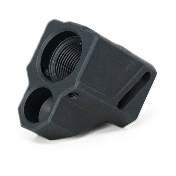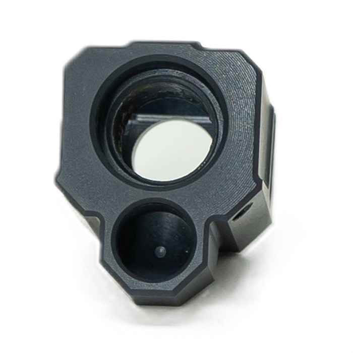 - Diseño: Presenta un diseño de cámara única con puertos frontales angulados que mejoran la consistencia mientras reducen el retroceso y el levantamiento del cañón.