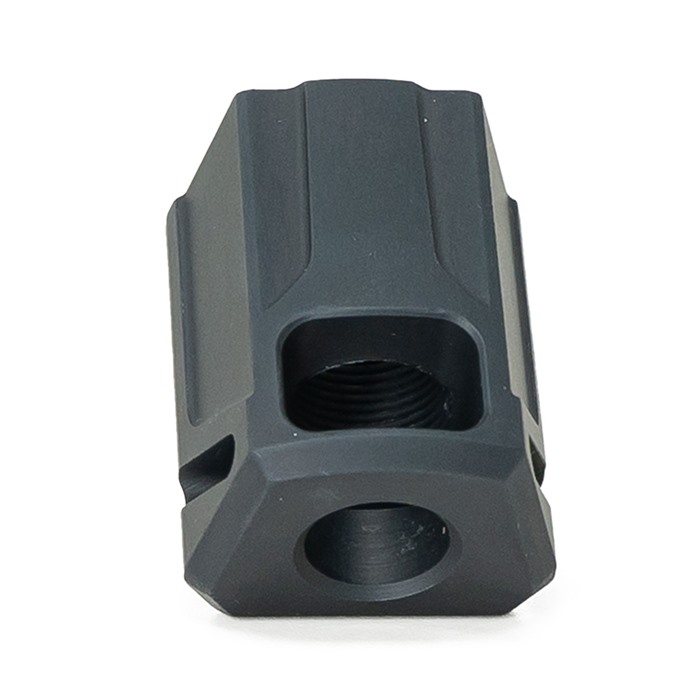 Consistency is key. Improve your shot with Faxon Firearms' EXOS Pistol Compensators. Faxon Firearms Pistol Compensators have been tested and confirmed compatible with SIG P320 Full-Size pistols. Compensators were not tested on, but reasonably could be compatible with the SIG P320 Compact/Carry pistol, though testing was not done on this model specifically. Constructed of 6061 Aluminum with a black anodized finish, Faxon Pistol Compensators feature a uniquely angled front port single chamber design, enabling the compensator to improve consistency while reducing muzzle climb and recoil. The angled ports allow gas to deflect upwards as opposed to only deflecting sideways, reducing up and down muzzle movement and improving reliability. Barrel protrusion is designed to fit flush with the slide and has been optimized for Faxon branded barrels. For all other barrels, the barrel should protrude .600” or less for a flush fit. Each compensator comes complete with thread locker, two 6-32 set screws, and a 1/16 Allen wrench. SPECIFICATIONS: Length: 1.4in Width: 1.1in Height: 1.4in Weight: .08lbs Thread: 1/2x28 *Compensators can affect the timing of your pistol and may require adjustments in lubrication, ammunition, and other areas. Fitment with pistols or generations other than the SIG P320 Full-Size pistol cannot be guaranteed.