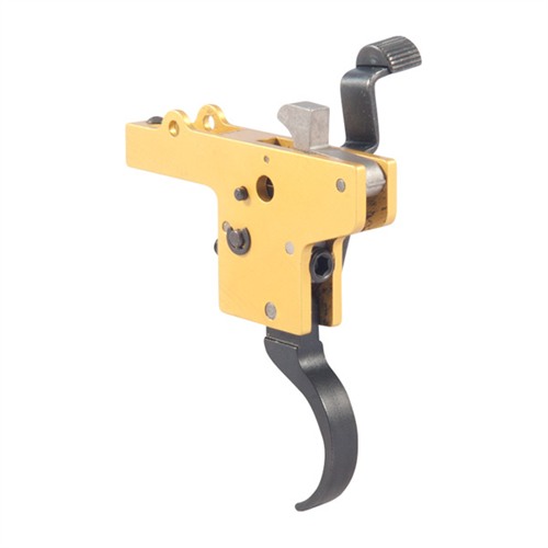 Hand honed and fitted for the ultimate in crisp, clean trigger pull. Adjusts for weight of pull (11⁄2 - 4 lb.), creep and overtravel. Lock nuts hold settings. Featherweight Deluxe (FWD) features the same adjustments and hand fitting as the Deluxe but includes trigger blocking and side safety.