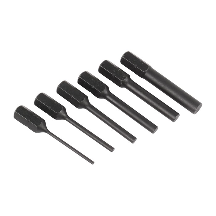 Estos punches de pin son compatibles con cualquier driver estándar de 1/4” y están fabricados a partir de barra sólida de acero, garantizando durabilidad y precisión en cada uso.