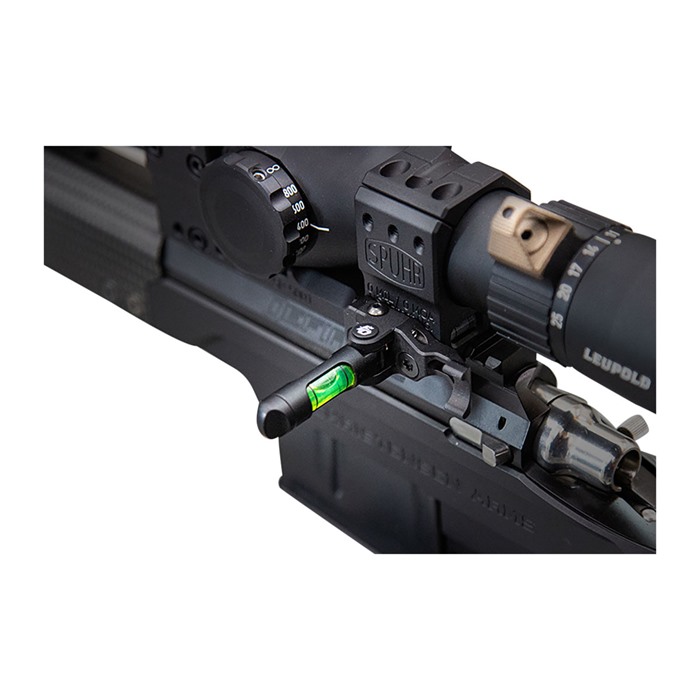 SPUHR® MOUNTED FOR ACCURACY The TANGO SM ACCU/LEVEL™ is Flatline Ops' newest SPUHR® mounted scope level*. It boasts the industries only SPUHR® adaptable level that is 'micro fine-adjustable' after installation. The Tango SM™ features interface locating rings that nest into the SPUHR® interface to assure a precision fitment. The ultra-lightweight design, at only 0.7oz, is Machined from 6061-T6 areospace grade aluminum and Mil Spec type III hard anodized for harsh conditions and abuse. The Tango SM™ patented articulating level arm, when not in use, the arm can be tucked into the body for safe travel and protection. When you are ready to use it, simply articulate the level arm out and you are ready to go. A long-range shot has many factors to take into consideration to be sure you are on target, and our ACCU/LEVEL™ system aids in the correction of ""cant error,"" giving you dead-on true vertical hold. The level also features an ultra-low profile and machine precision design to make sure you are locked into place before taking that critical shot. MADE IN THE USA IMPORTANT FITMENT INFORMATION * SPUHR® Mount Fitment: The Tango SM™ fits SPUHR® Mount Models: SA, SP, SS, ST, and QDP. Other models may vary and may not be compatible. The mounting locations may vary depending on scope brand, tube and turret size, as well as SPURH® Mount model and size. We recommend running the Tango SM™ in the rear lower interface locations for best sight acquisition.
