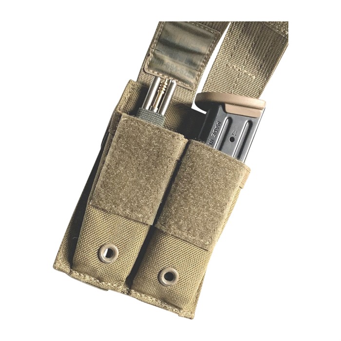 El CSR se puede pedir con un pouch personalizado hecho a mano, y también se puede almacenar en un pouch de cargador de pistola. En caso de que el CSR se lleve en la culata, proporcionamos una banda elástica de nylon de 1" que mantiene las varillas juntas y evita que suenen dentro del compartimento de almacenamiento de la culata.