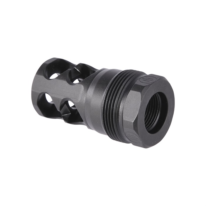 Elevate your shooting experience with the cutting-edge PWS 3-Port FRC compensator specifically designed to serve as a suppressor host for the Rearden Atlas suppressor mounting system—compatible with popular suppressors like the BDE 556. Crafted with precision and innovation, this compensator stands as a premier selection for a diverse range of shooting scenarios. The PWS FRC compensator sets itself apart by prioritizing recoil reduction as its primary function while simultaneously excelling at flash suppression. Its distinctive 2-port design skillfully redirects flash away from optics and the line of sight, ensuring an unobstructed view and minimizing overpressure. When paired with suppressors, the FRC boasts a tight lockup and maintains it through hard shooting cycles, ensuring reliability in any situation. Mounted precisely, the FRC becomes a crucial component in your rifle's comprehensive recoil management system. By effectively mitigating recoil and muzzle rise, this compensator enables swift follow-up shots, ultimately delivering improved shooter control and accuracy, even in rapid-fire scenarios. Choosing the PWS FRC provides the best of both worlds—superior recoil management and effective flash suppression—making it an indispensable asset for any shooter looking to enhance their shooting prowess and overall experience on the range or in the field. Select between flat shouldered option, for traditional rifle barrels, or tapered shoulder, for barrels with a tapered shoulder behind the muzzle threads.