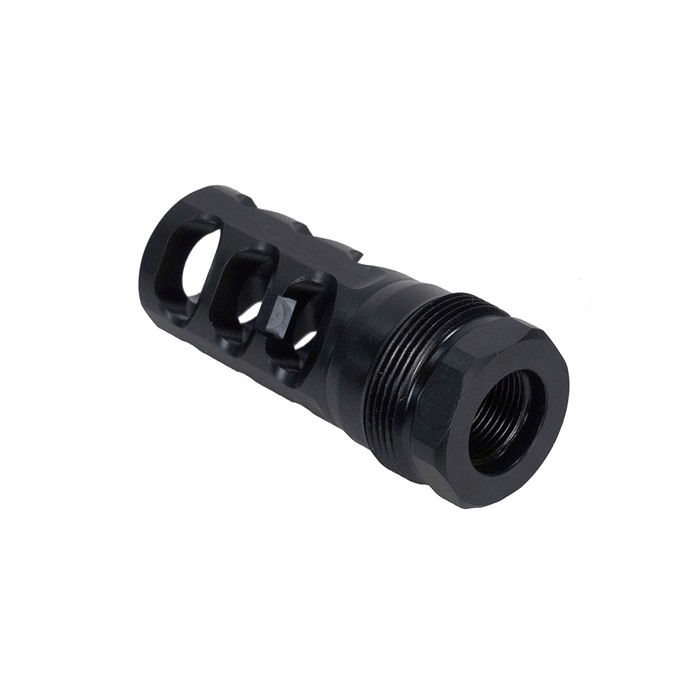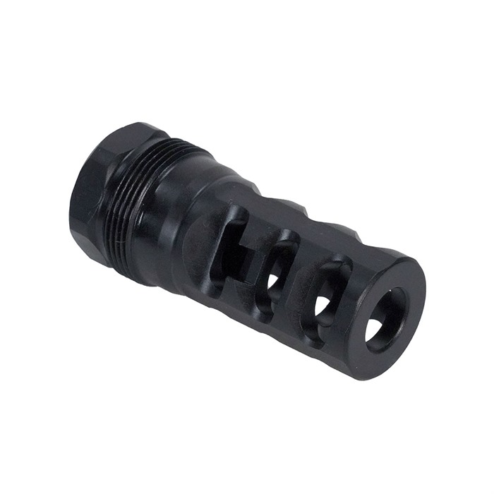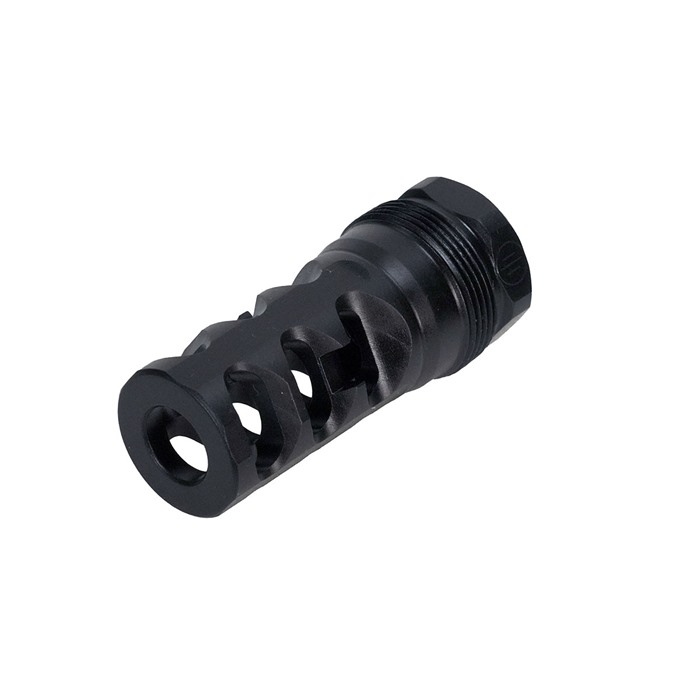 Elevate your shooting experience with the cutting-edge PWS FRC compensator, serving as a suppressor host for the Rearden Atlas suppressor mounting system—compatible with popular suppressors like the BDE 762. Crafted with precision and innovation, this compensator stands as a premier selection for a diverse range of shooting scenarios. The PWS FRC compensator sets itself apart by prioritizing recoil reduction as its primary function while simultaneously excelling at flash suppression. Its distinctive 3-port design skillfully redirects flash away from optics and the line of sight, ensuring an unobstructed view and minimizing overpressure. When paired with suppressors, the FRC boasts a tight lockup and maintains it through hard shooting cycles, ensuring reliability in any situation. Mounted precisely, the FRC becomes a crucial component in your rifle's comprehensive recoil management system. By effectively mitigating recoil and muzzle rise, this compensator enables swift follow-up shots, ultimately delivering improved shooter control and accuracy, even in rapid-fire scenarios. Choosing the PWS FRC provides the best of both worlds—superior recoil management and effective flash suppression—making it an indispensable asset for any shooter looking to enhance their shooting prowess and overall experience on the range or in the field. Select between flat shouldered option, for traditional rifle barrels, or tapered shoulder, for barrels with a tapered shoulder behind the muzzle threads.