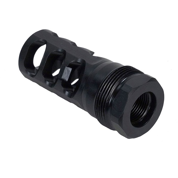 Elevate your shooting experience with the cutting-edge PWS FRC compensator, serving as a suppressor host for the Rearden Atlas suppressor mounting system—compatible with popular suppressors like the BDE 762. Crafted with precision and innovation, this compensator stands as a premier selection for a diverse range of shooting scenarios. The PWS FRC compensator sets itself apart by prioritizing recoil reduction as its primary function while simultaneously excelling at flash suppression. Its distinctive 3-port design skillfully redirects flash away from optics and the line of sight, ensuring an unobstructed view and minimizing overpressure. When paired with suppressors, the FRC boasts a tight lockup and maintains it through hard shooting cycles, ensuring reliability in any situation. Mounted precisely, the FRC becomes a crucial component in your rifle's comprehensive recoil management system. By effectively mitigating recoil and muzzle rise, this compensator enables swift follow-up shots, ultimately delivering improved shooter control and accuracy, even in rapid-fire scenarios. Choosing the PWS FRC provides the best of both worlds—superior recoil management and effective flash suppression—making it an indispensable asset for any shooter looking to enhance their shooting prowess and overall experience on the range or in the field. Select between flat shouldered option, for traditional rifle barrels, or tapered shoulder, for barrels with a tapered shoulder behind the muzzle threads.