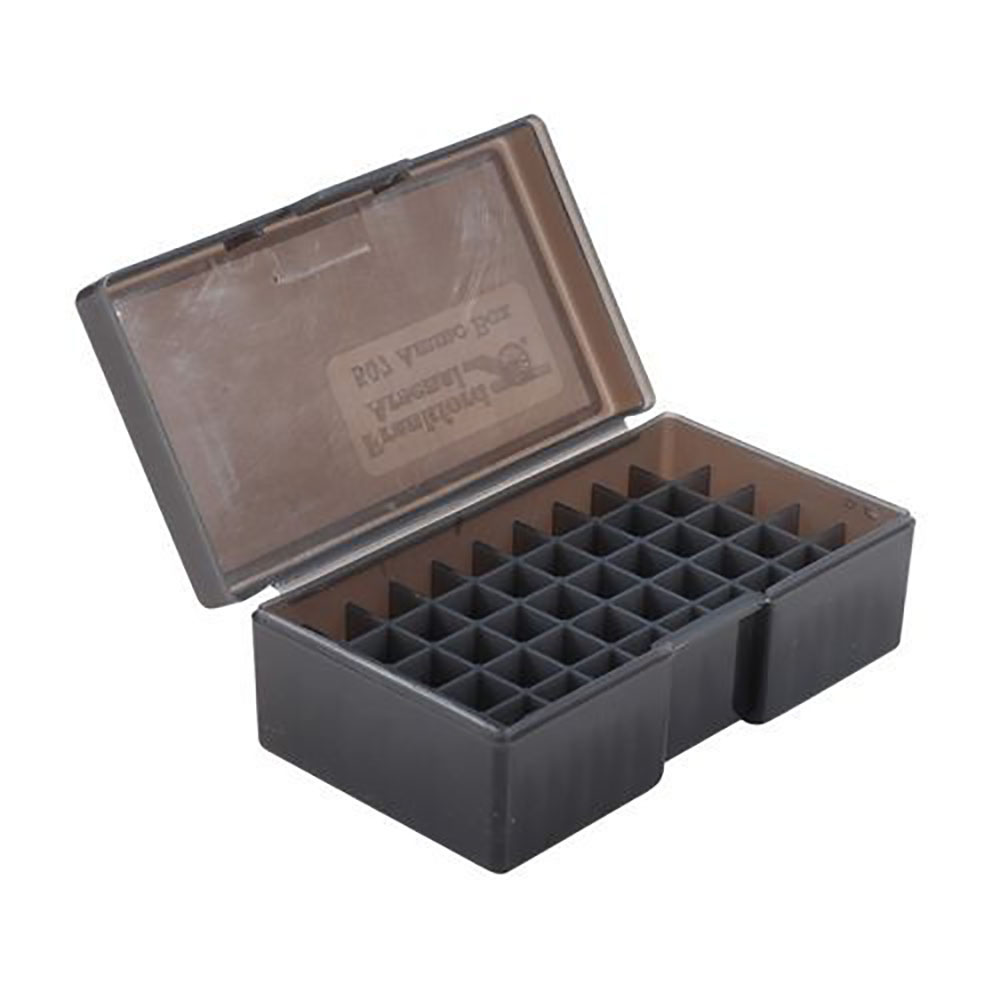 Las cajas de munición de plástico transparente de Frankford Arsenal son ideales para almacenar e identificar tu munición recargada. Disponibles en dos colores diferentes y en doce tamaños distintos, estas cajas se adaptan a la mayoría de los calibres.