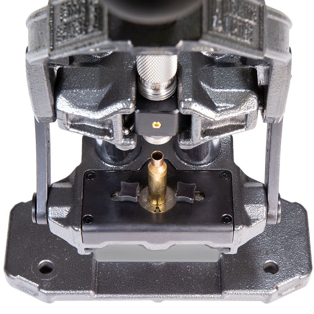 661120416760 • Sistema de placa de soporte de concha "flotante" integral fácil de ajustar • Sistema de die de recarga estándar de 7/8"-14 de cambio rápido • Capturador de cebos gastados e incluye 3 bloques de die de aluminio fundido • Carga cartuchos de pistola o rifle de tamaño pequeño a magnum • 2 varillas guía paralelas para estabilidad e iluminación LED integrada para ver el área de trabajo • Desde .22 hornet hasta .338 Lapua Magnum