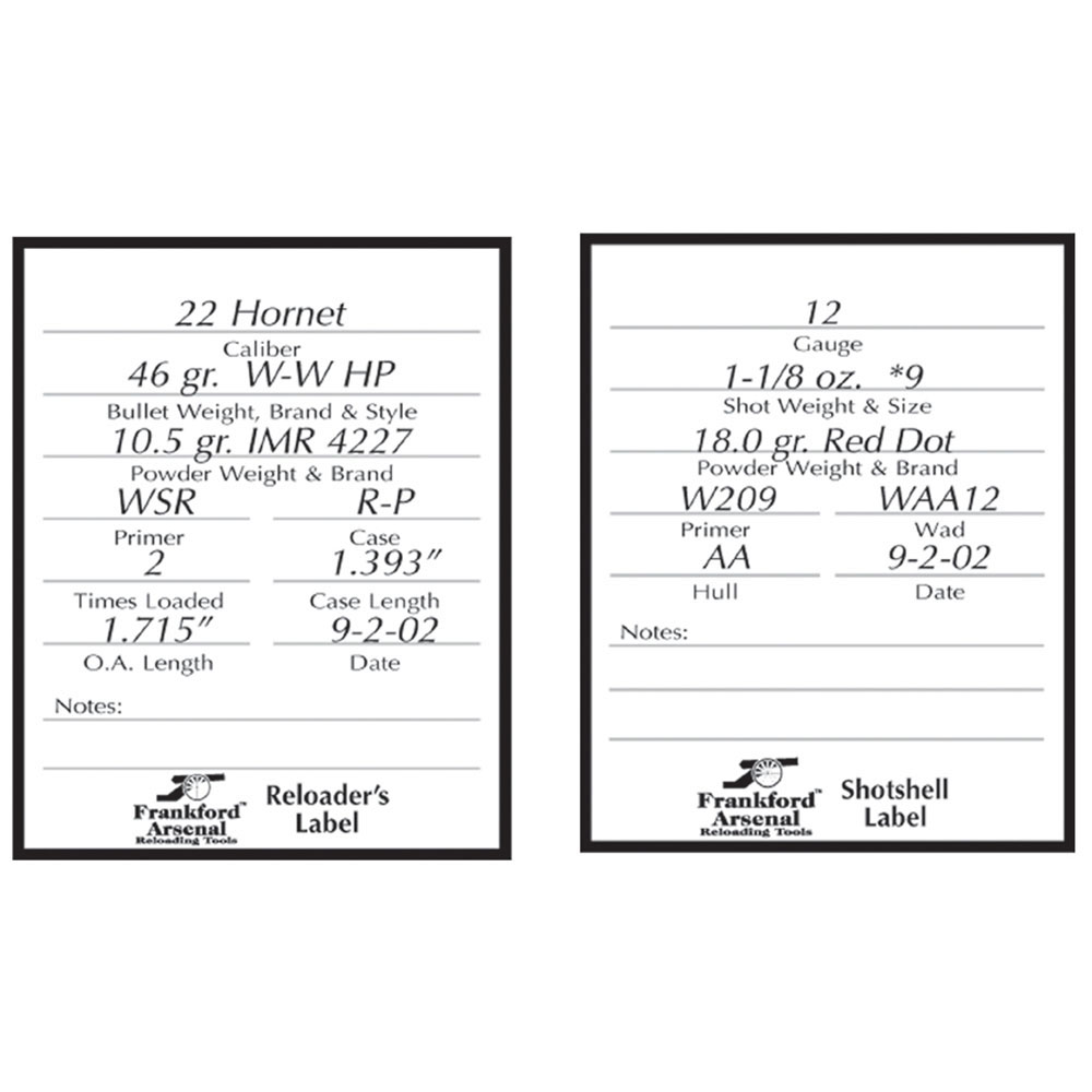 Gracias por elegir las Etiquetas de Recarga de Pistolas y Rifles de Frankford Arsenal. Estas etiquetas autoadhesivas están diseñadas para ayudarte a registrar datos importantes sobre tus cargas de pistola, rifle o escopeta. Este manual proporciona pautas de seguridad que debes seguir para garantizar un uso seguro y efectivo del producto.