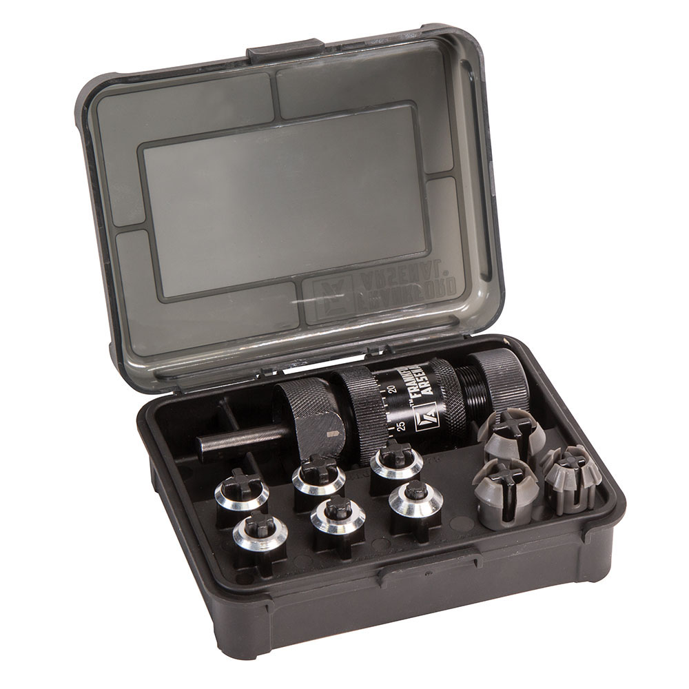 - Ajusta el sistema de colete según el tamaño del casquillo que vas a recortar.
