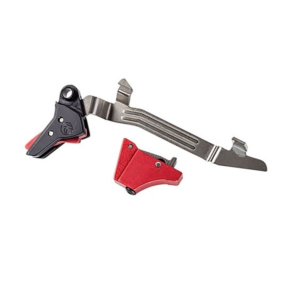 Compatible con los calibres 10mm Auto y .45 Auto, este gatillo es ideal para los modelos GLOCK G20, G21, G29, G30, G40 y G41. El Alpha Red Competition trigger está configurado de fábrica con un peso de tiro fijo de 3 lb (1,362 g), ofreciendo una respuesta rápida y precisa en cada disparo.